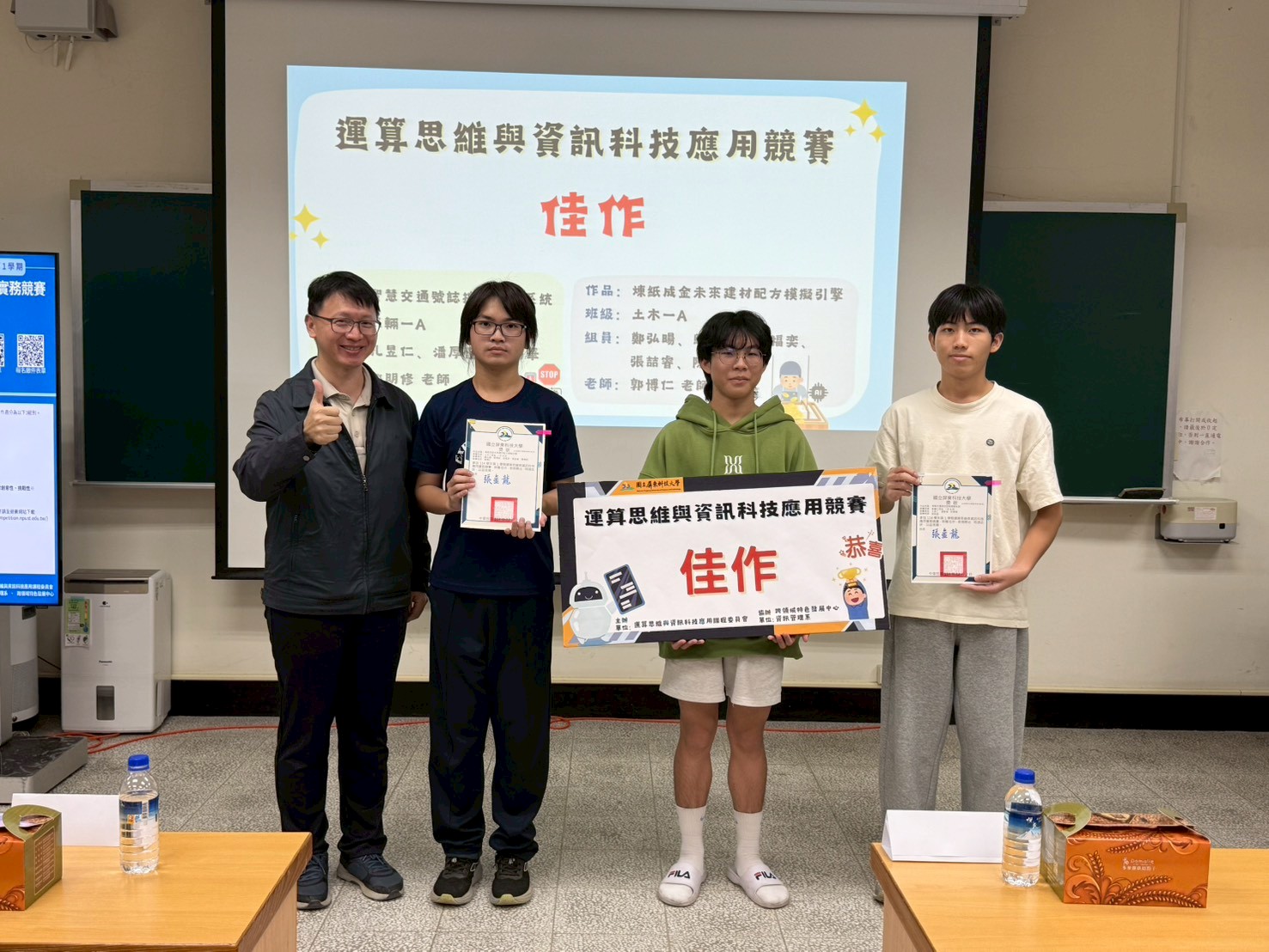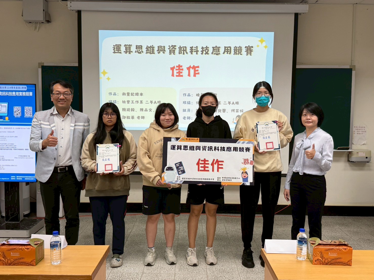 1.114學年第1學期運算思維與資訊科技應用實務競賽,共16組獲獎(含優等及佳作獎)。